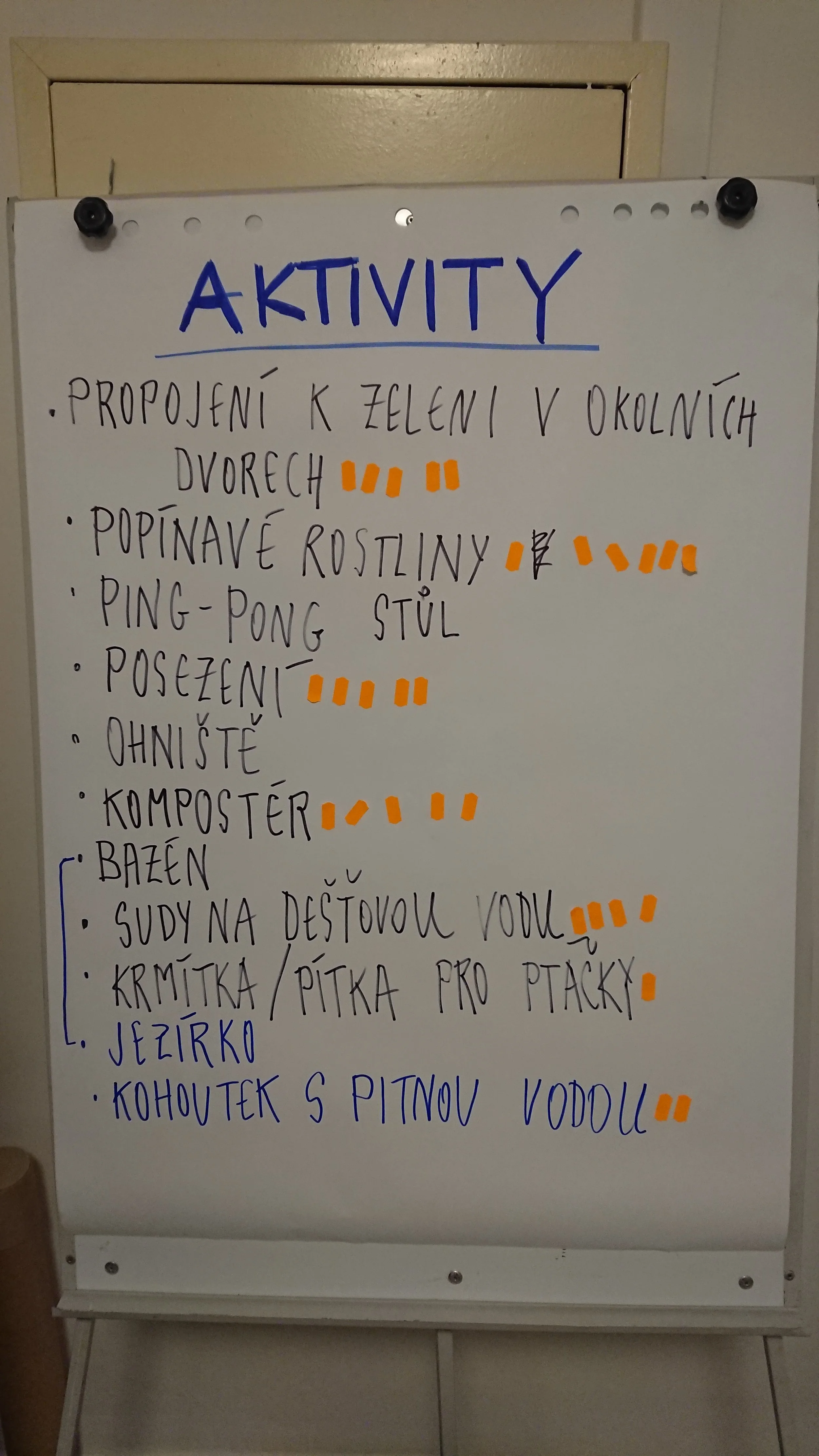 C) Jaké jsou vítané aktivity - pro jaké činnosti je vhodné vytvořit podmínky a prostor? + třídění dle důležitosti