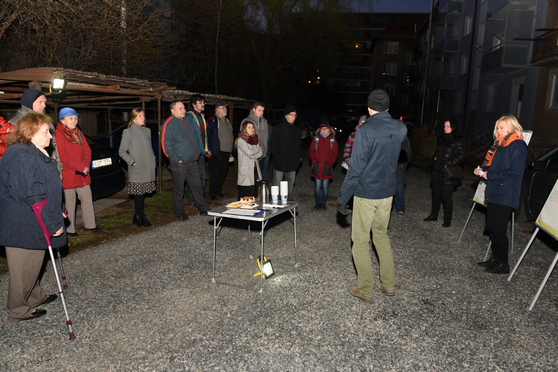 Spolek Bieno uspořádal ve spolupráci s MČ Prahou 4 ve čtvrtek 18. března 2019 debatu, které se zúčastnilo přibližně 30 obyvatel přilehlých domů. K debatě byli pozvání všichni tištěnou pozvánkou, která byla roznesena do poštovních schránek a vyvěšena na nástěnkách. Setkání mělo formu řízené diskuse a sběru podnětů. Každý měl možnost vyjádřit své osobní pocity a postoje bez nutného ohledu na ostatní obyvatele. Lidé byli vyzvání, aby nápady druhých v této fázi nekomentovali, neposuzovali. Cílem tohoto přístupu bylo zjistit celé široké spektrum názorů, nápadů či problémů bez okamžité cenzury. Základní okruhy otázek zněly: