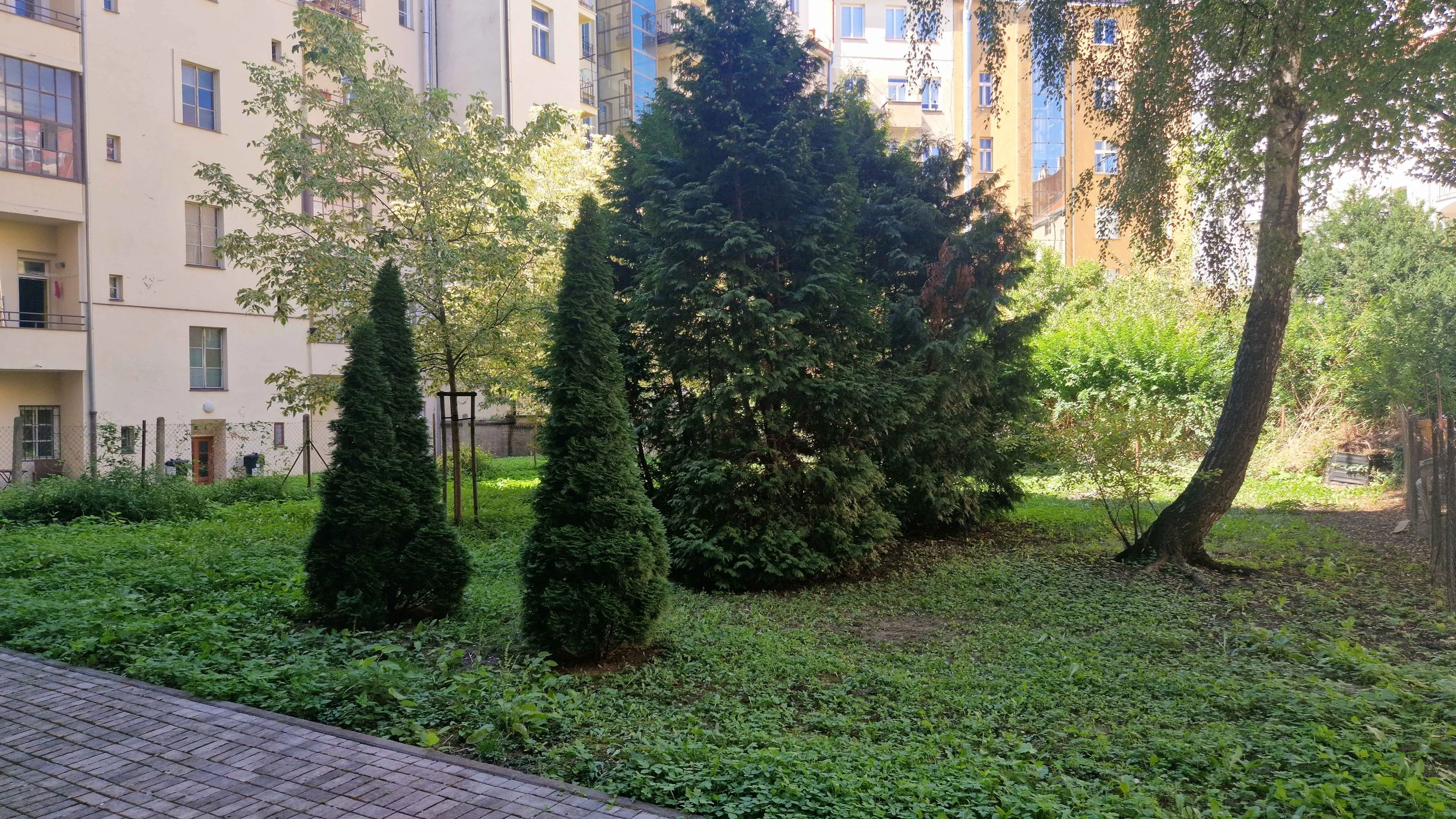 Vnitroblok Václavkova tvoří převážně zahradní parcela přiléhající v současnosti k jednomu domu. Jedná se o geometrickou polovinu dříve spojité plochy společné se sousedním domem, na které bývalo sportovní hřiště. Pozemky jsou nyní oddělené nízkým plůtkem, který však nedosahuje až domovním zdem a je zde ponechán volný průchod mezi oběma domy. Na pozemku stojí vzrostlá bříza, která je dominantou této části vnitrobloku. Obyvatelé dosadili další nové stromy, které postupně dorůstají a dotvářejí přírodní podobu místa.